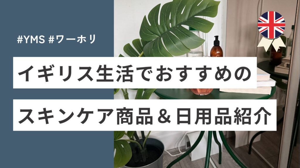 イギリス生活でのおすすめのスキンケア商品、日用品を紹介しました。イギリスのお水は硬水なので、肌荒れする方も多いかと思います。私も家探しや仕事探し&環境変化からのストレスなど全てが重なり、一気にお肌が荒れましたが、調子を取り戻してきました!今回の記事がこれから渡英予定の方や、スキンケア用品に迷っている方の参考になれば幸いです。